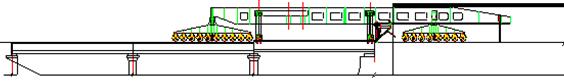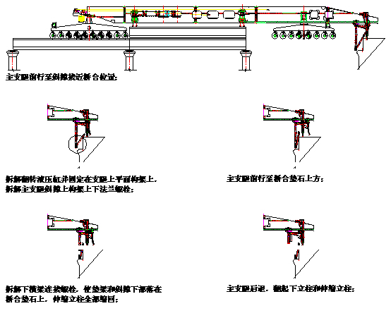 2、按前述正常架梁作业程序使辅助支腿上桥台并准确就位: