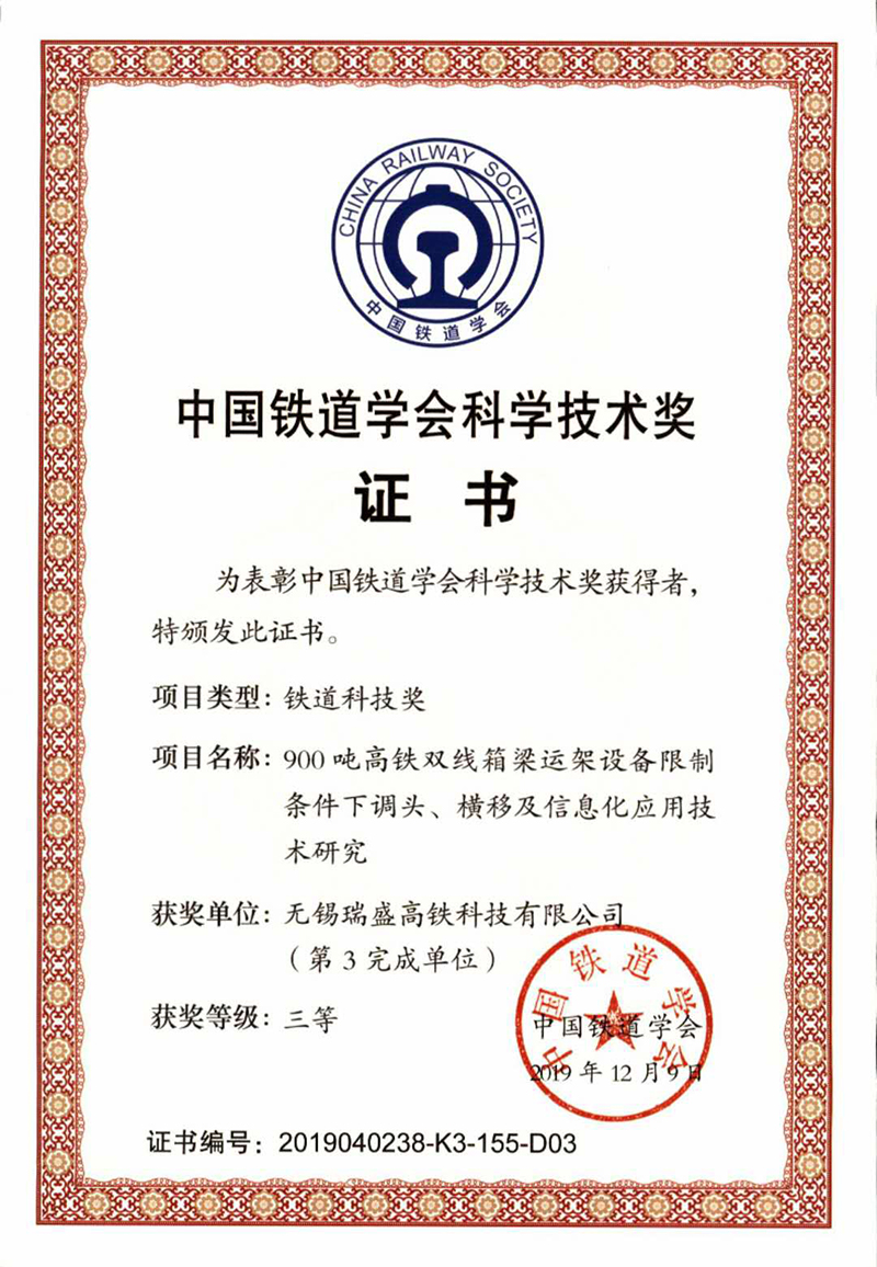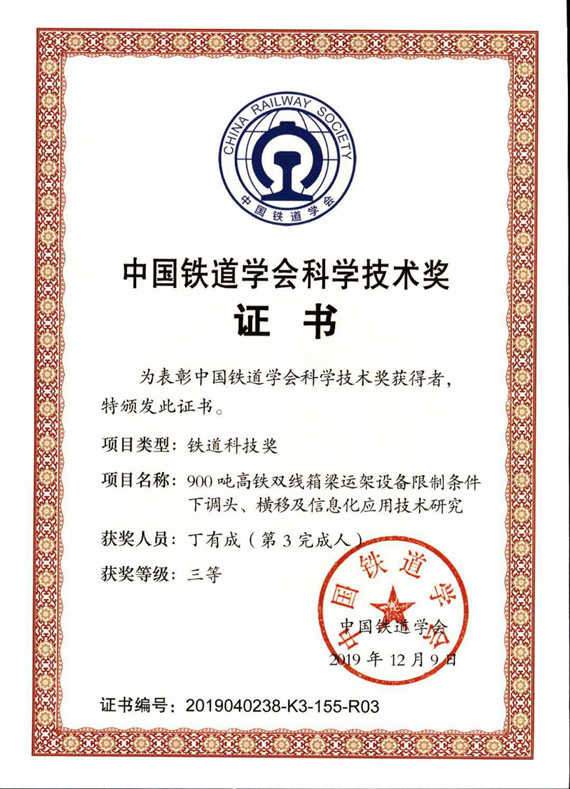 中国铁道学会科学技术奖励证书