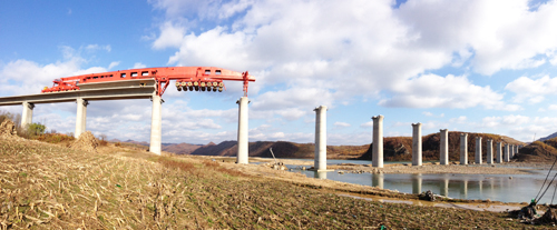 运架一体机适用于山区铁路客运专线(桥隧相连)20m、24m、32m双线整孔混凝土箱梁(含曲线梁、现浇梁前后的箱梁)的架设;能在铁路客运专线混凝土箱梁预制场吊运,并能够把混凝土箱梁从预制场地通过便道、路基、桥梁(包括钢结构连续梁、单跨及多跨连续现浇梁等)、涵洞运至架梁工位完成架梁作业,而且对路基及桥面不造成任何损害;可在不需要辅助设施的情况下,利用设备自身功能和辅具,进行工地转移、调头、吊运混凝土箱梁穿越铁路客运专线双线隧道,并能做到在作业过程中不会和已完成工程发生碰撞,方便快捷的完成孔梁之间的架设任务。