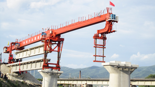 最后是组装架桥机的天车,组装架桥机天车时,天车的轮组、定滑轮安装后,摆放卷扬机和动滑轮。整机拼装完成后,挂动力线试运行,没有问题后方可进行下一步的操作和拼装。